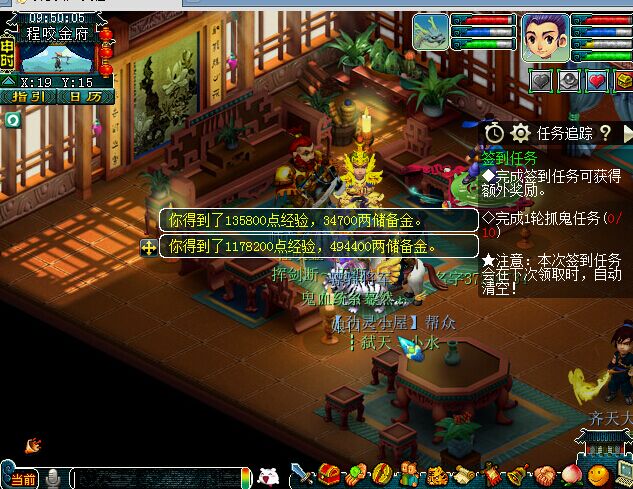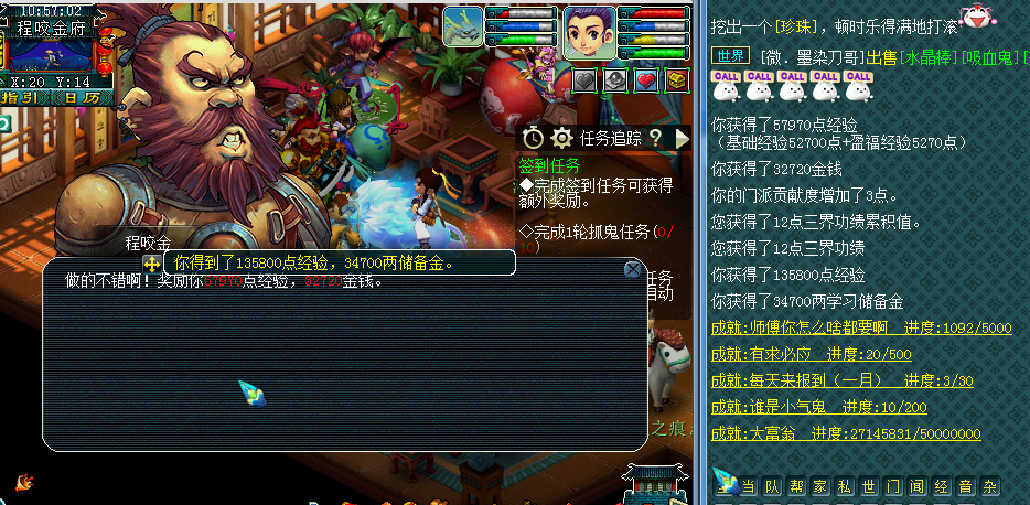 现金多了27W不到点,身上还多了5个乾坤袋,算起来2轮师门30W现金,还有3W4储备,运气好还有外快,朱雀石一个,总体来说,现金35W
