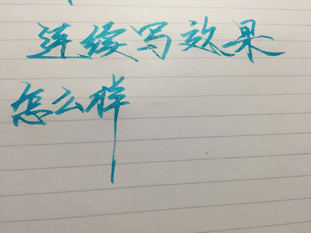 慢点写,出粉还是相当可观。如果尝试的话还是找出水比较大的笔比较好。感觉比坛水的还容易出粉。不过也有前面出粉多,写着写着粉就少的现象。不过总的来说出粉很流畅,感觉可以用。