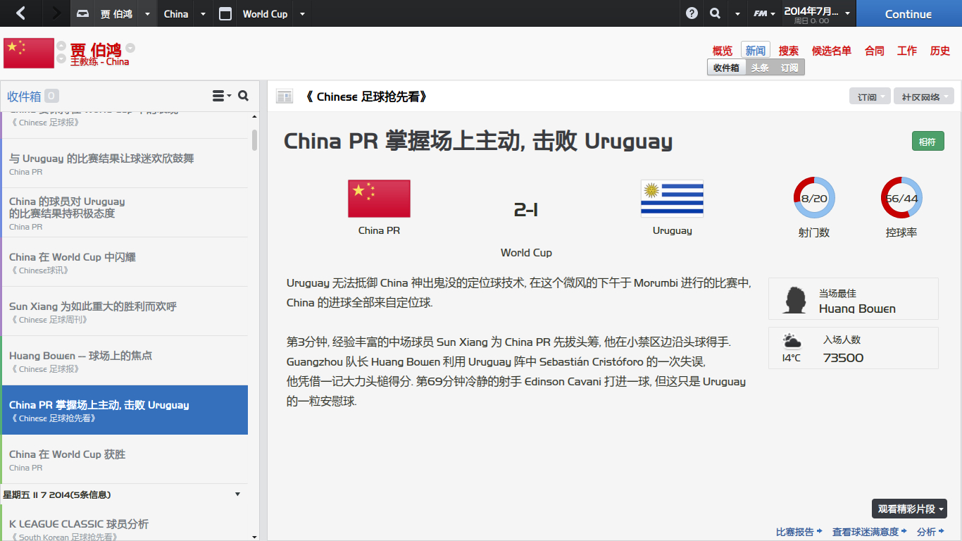 老子玩cm01~02时用中国那世界杯冠军,决赛1:0巴西,进球的张恩华你认识吧?