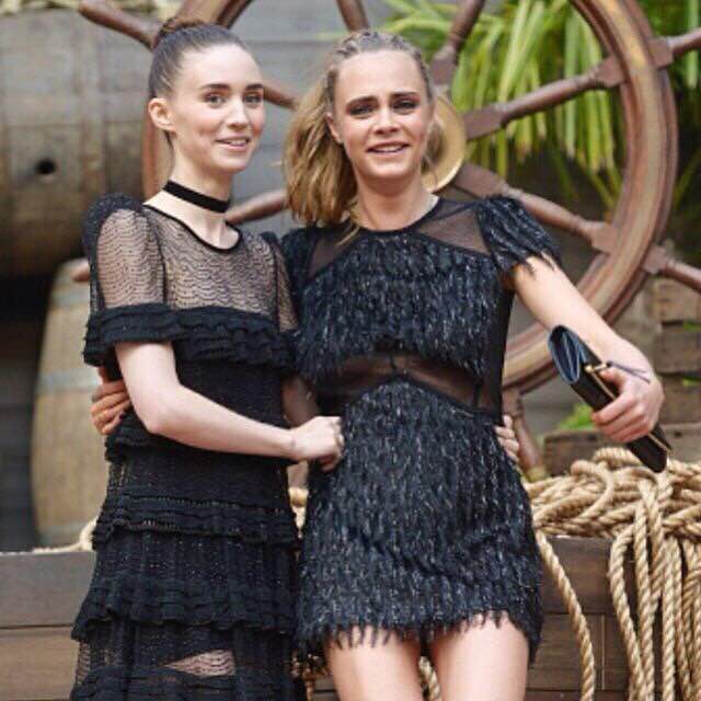 站在Cara旁边,Rooney Mara的气场小了好多。