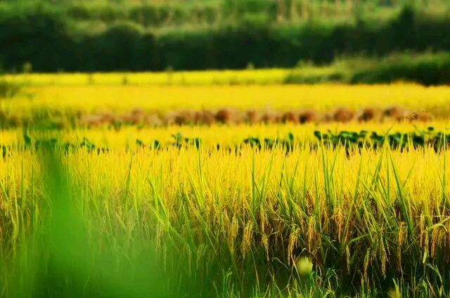 稻田里的禾苗成熟了,田野一片金黄,好一派丰收的喜人景象,给人一种“春华秋实”的感受。看着这么黄灿灿的稻田,我们约起回家打禾去!