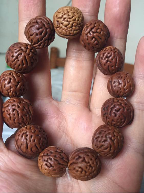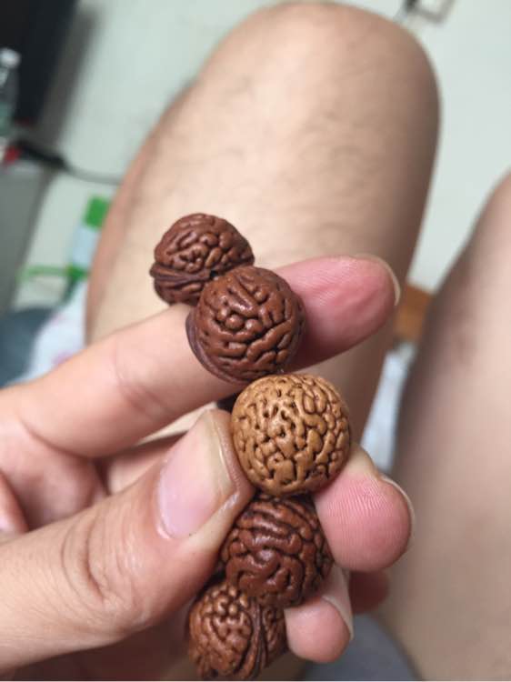 就是刷,刷完了戴,几乎没怎么上手盘过,我比较爱运动,猪肉不怎么吃,不怎么爱出汗,且出的汗分泌的油性又少,别急,咱慢慢来 (后配了一颗桃核,因为有点勒手,又没有其余的纹路,所以就配上一颗脑纹正圆的桃核了)