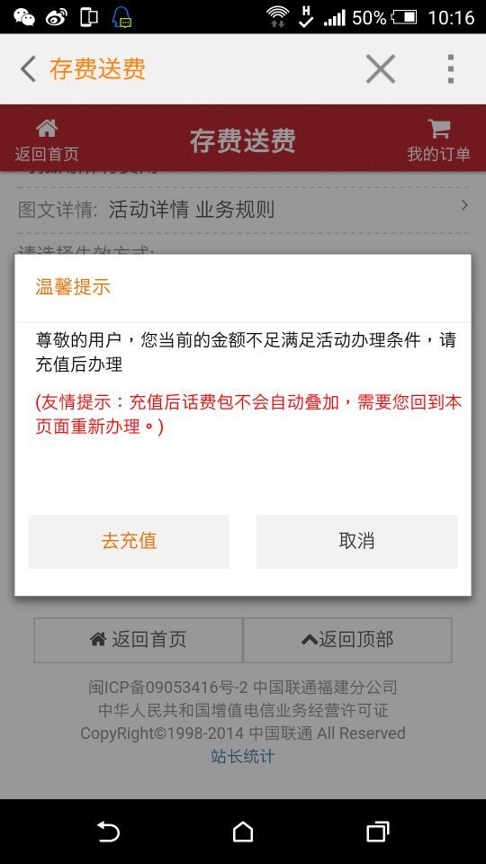 关于手机营业厅,3G老用户特惠,存一送三,无法办理问题。
