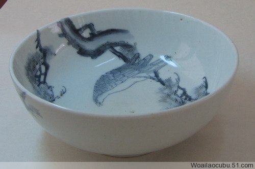 藏品说明:该青花碗高7.3cm口径17.6cm底径7.5cm,釉色非常温润,画工精细,鹰松所用青料灰青,极为少见。是民国早期(明治维新时期)的一件作品。保存完整,全品相。