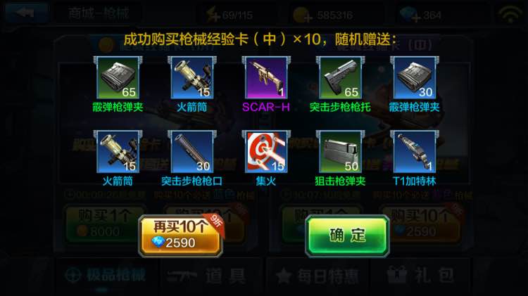 十连抽很大几率抽到自己不需要的枪。那还不如用钻买自己需要的枪。