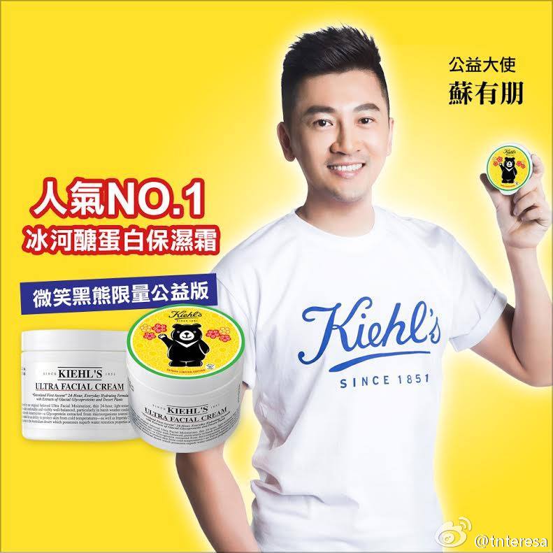 @tnteresa:Kiehl’s 契爾氏今年邀請蘇有朋擔任台灣黑熊保育大 使,藉由公益主題 「擁抱微笑黑熊,邀請您一起關心台灣黑熊,和Kiehl’s 契爾氏一起展開實際行動,支持台灣黑熊保育計畫,每一瓶Kiehl’s契爾氏冰河醣蛋白保濕霜微笑黑熊限量公益版 銷售,Kiehl’s為您捐出1元美金給 「台灣黑熊保育協會」