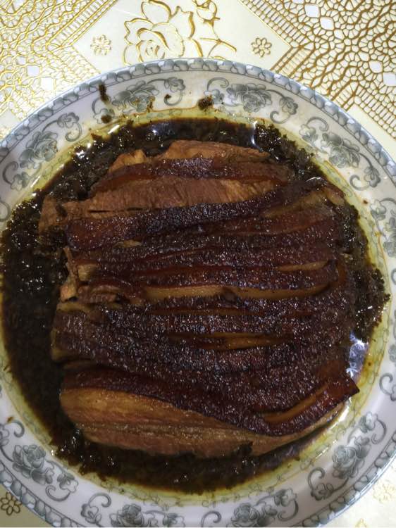 不是蒸茏蒸的,看上去上水了.上水的扣肉少粘性.整体还不错,没上糖色