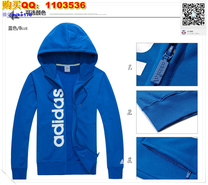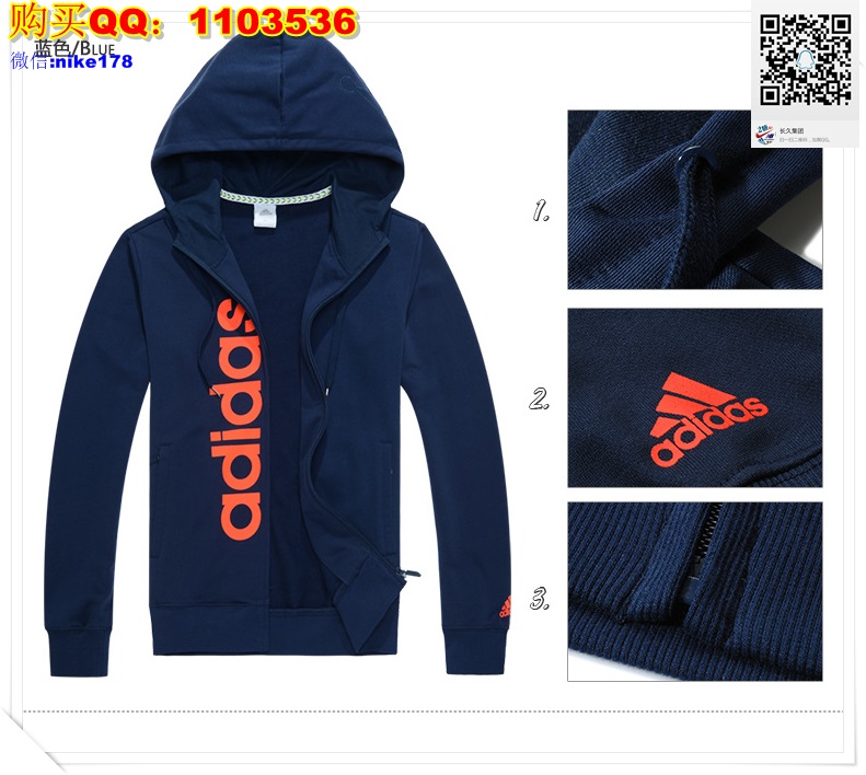 阿迪达斯2015新款情侣款运动连帽开衫卫衣男女款运动户外长袖T恤