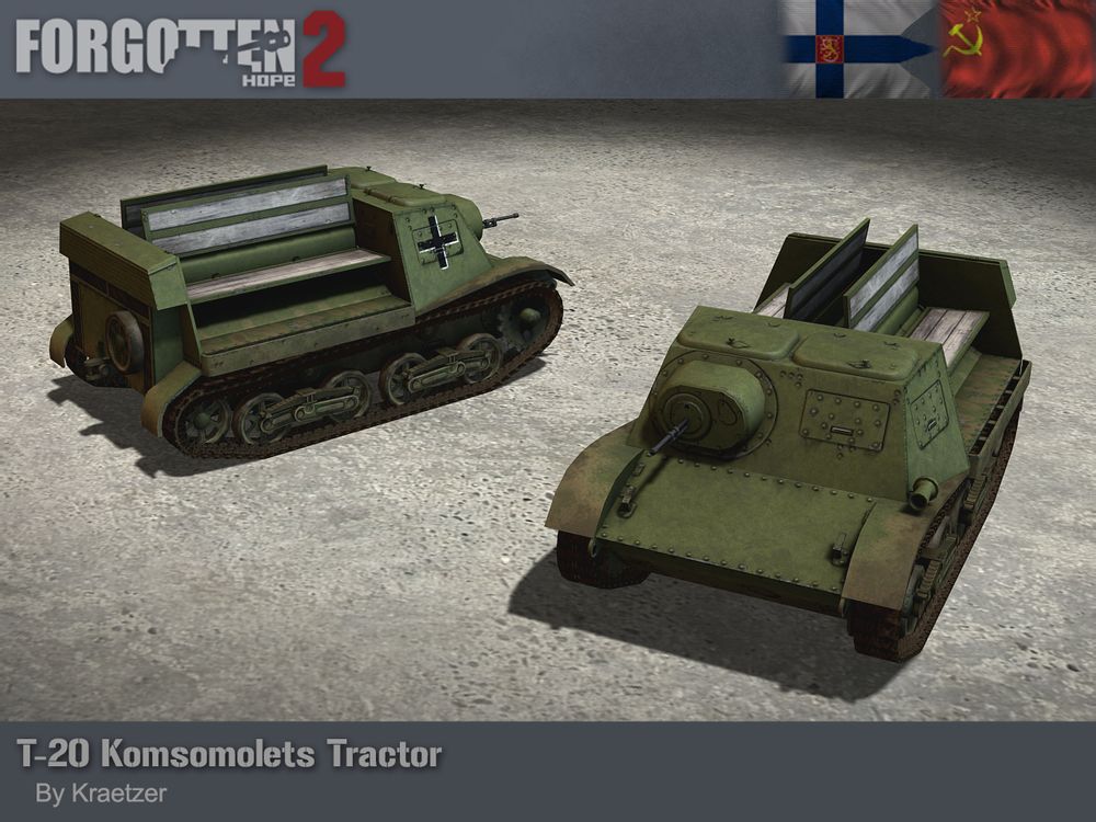 The T-20 was developed in 1936, using a modified hull from the T-38 amphibious tank. It was intended to act as a tractor for smaller artillery pieces such as the 45mm anti-tank gun or the 120mm mortar. Up to 6 of the weapon's crew could be seated on the back, while the driver and commander were protected in the fully armoured front cabin.
