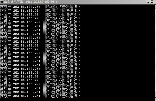 PING 的结果 回覆:目的地网络无法连线