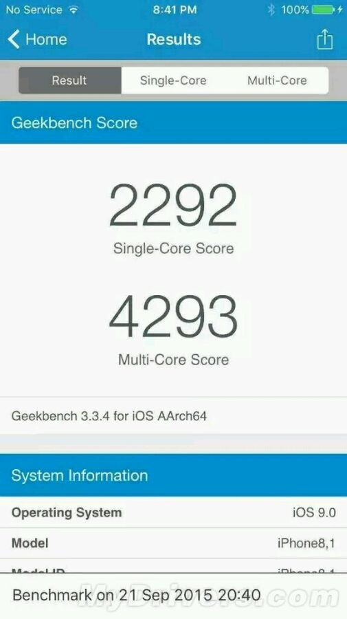 Geek Bench 3是一款Android和ios的跨平台跑分工具。近日外媒用此软件测试6s跑分已超过某些型号的MacBook。。。借此楼主想到了手边正好有一台htc one mini,于是乎想看看二者的性能差距到底有多大。下面开始上图,先是6s的