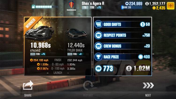 这车在CSR1里是坑!在CSR2里是宝!看看这可是目前CSR2里唯一能向10秒跑完1/2英里的车。