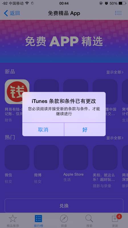 app store上说条款和条件已修改 让我阅读并同意