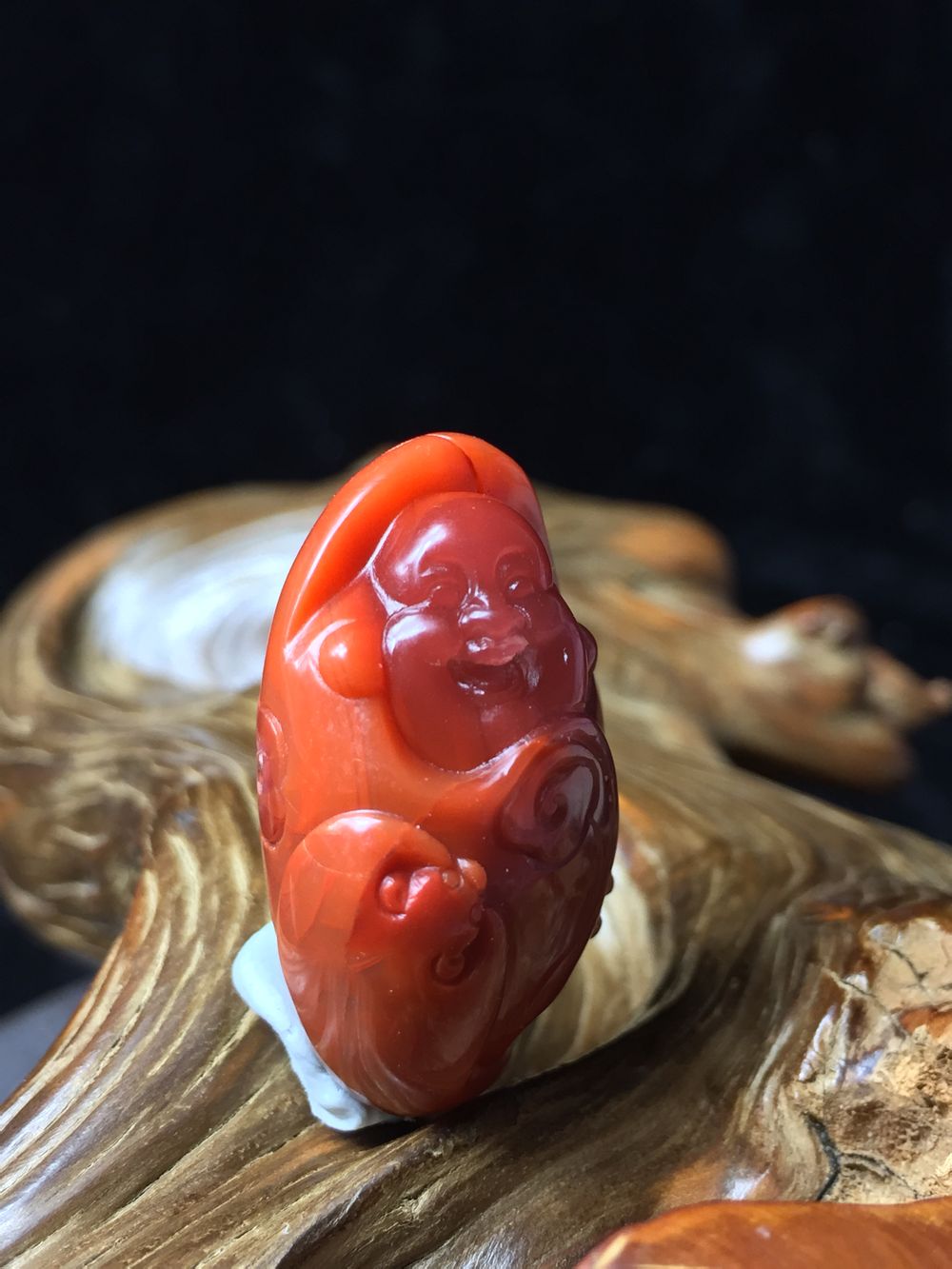 南红玛瑙~川料九口柿子红玫瑰俏色项坠~弥勒~佛引福来