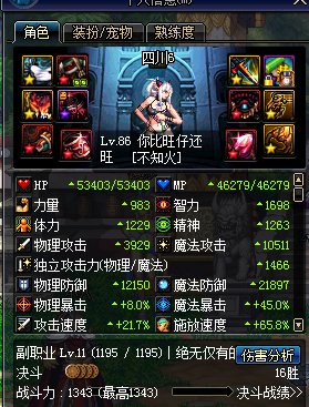 3楼。楼主的面板,装备,时装,加点思路