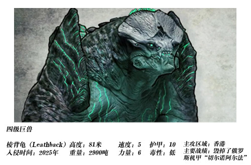 除了身体毒素和辐射之外,开菊兽的血液也是致命武器。它们的血液呈蓝色液体状,被称为“怪兽毒蓝”(Kaiju Blue)。一旦个体死亡,其身体会自动分解,血液蒸发进入大气,与氧分子结合形成二氧化氮,对环境有极大的危害,人体吸入后会引发咳嗽、肺水肿、呼吸道疾病等,巨兽死亡区域大气无法呼吸。加之巨兽的血液有高腐蚀性,被认为是一种强酸(设计者八成是异形的粉丝)