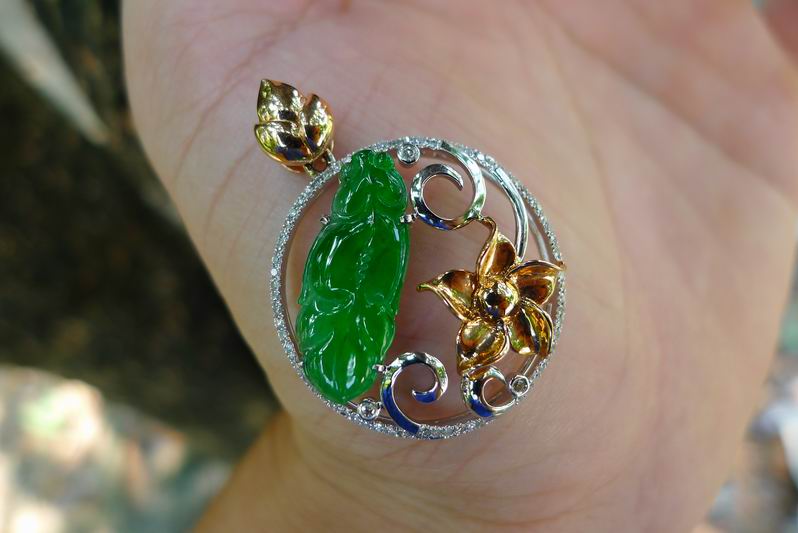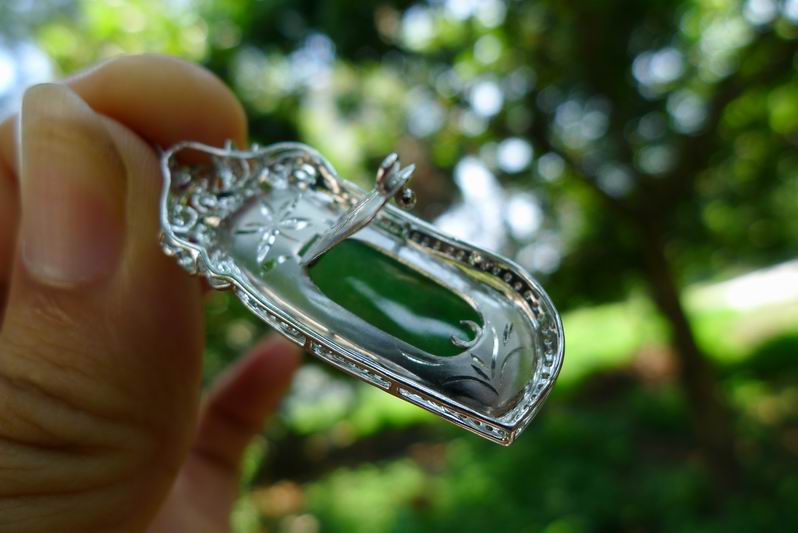 一、 精工18K白金加钻镶嵌冰种绿福瓜吊坠/挂件