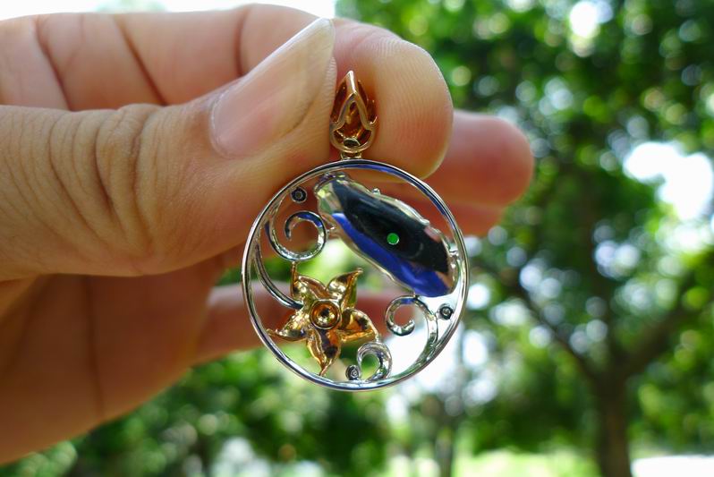二、精工18K白加钻镶嵌冰种阳绿年年有余吊坠