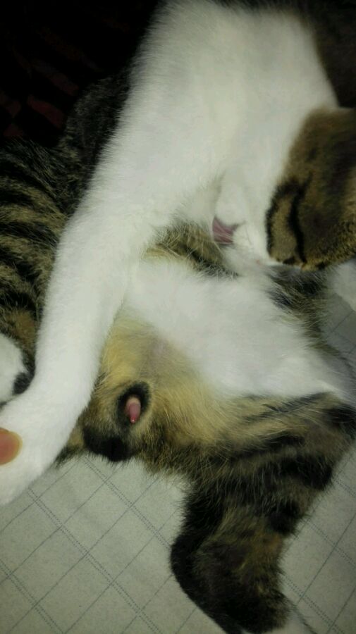 我的喵两个月大就会这样了,貌似是小丁丁