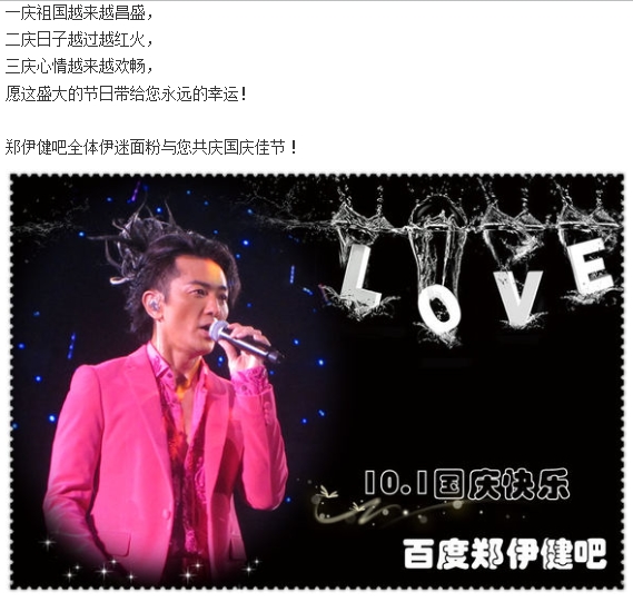 -------------------❤ ❤郑伊健吧 全体面粉送上国庆祝福❤ ❤---------------------