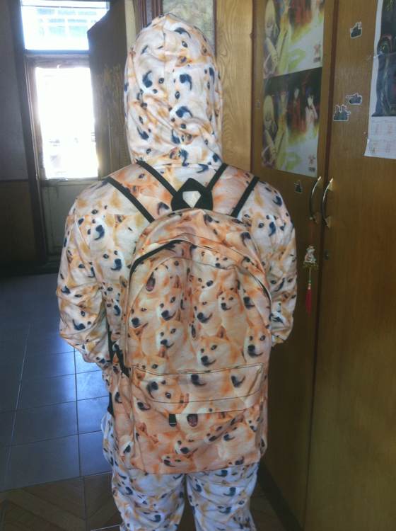 在下正是那只穿着神烦狗doge一套上午四处拍颜艺的逗逼,也是下午高唱老子名叫赵日天的那只团员