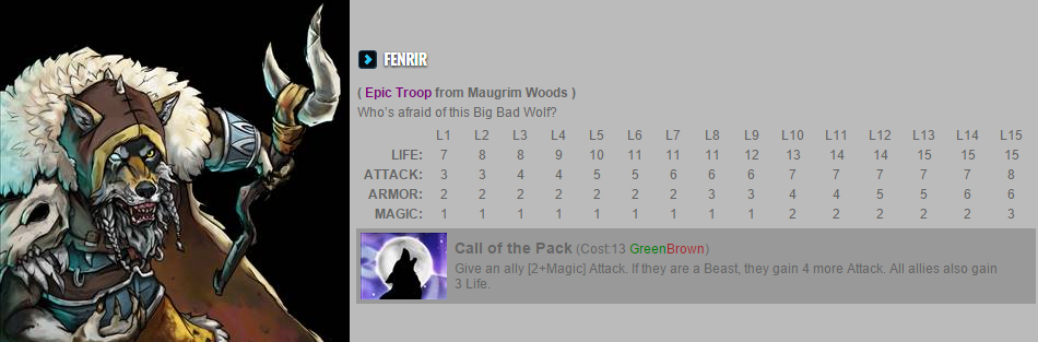 构筑方面:兽族在满状态下最高可加10攻!由于群奶上限的存在,魔狼是有一定使用价值的。目前物攻方面比较理想的搭配对象是洗脸+魔狼+爆黄+火箭,虽然不算太快,但是强度是可以保证的。物魔双修的可以考虑:圣狮+魔狼+爆骷髅+狼德。非兽族搭配:群攻老头+爆骷髅+魔狼+火箭,这套卡组相性很高,实战强度应该不错的。屌丝还有群攻老头+魔狼+爆黄+独眼兽人,相对来说偏魔伤!JJC方面: 7攻13血4甲2魔,加4+4攻,还群奶3!