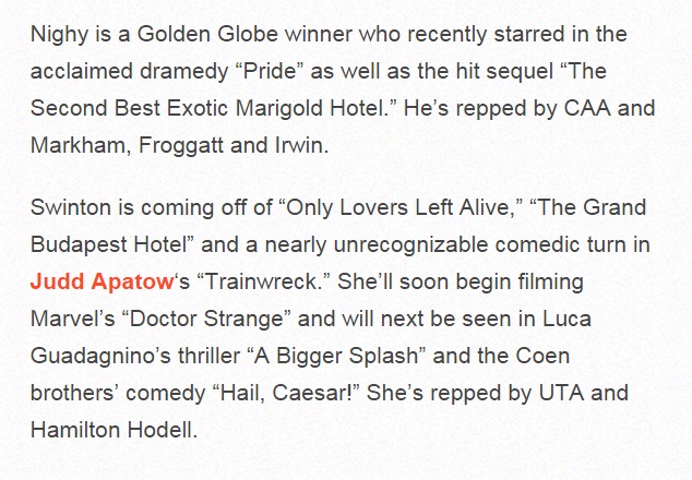 由Wrap首先报道该消息。 从目前披露的演员阵容来看都是演技派,而且该导演之前的怪物片《the host》也颇受评论好评。 女王Tilda是即Snowpiecer后第二次与该导演合作,表示 “I’m already planning more adventures with Bong Joon-ho. He is a great master,”