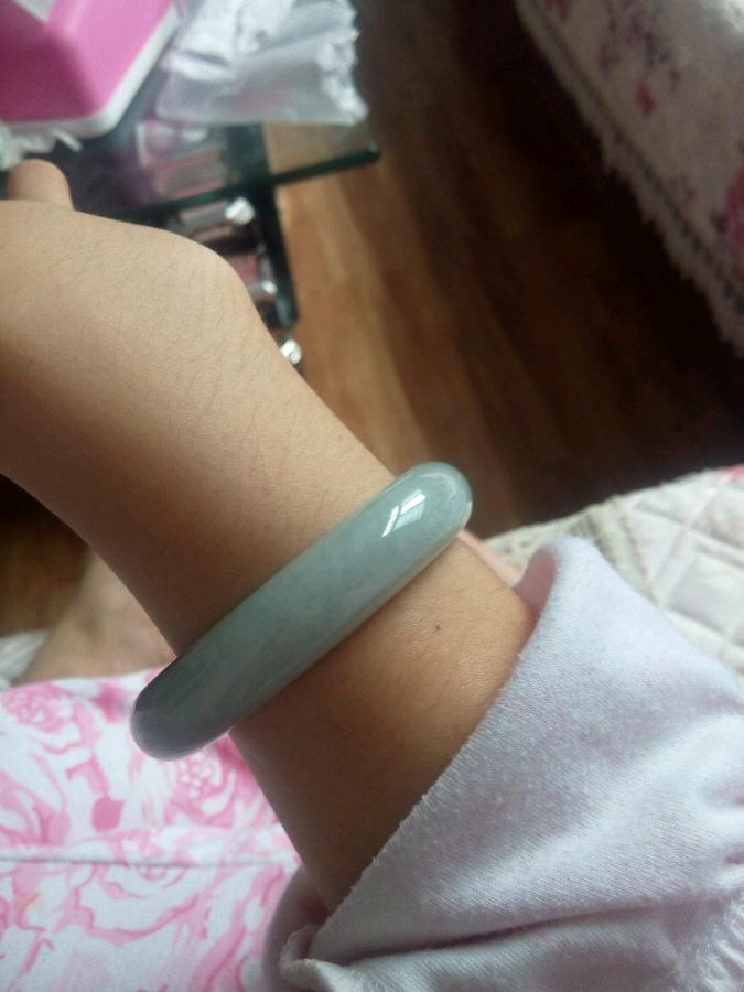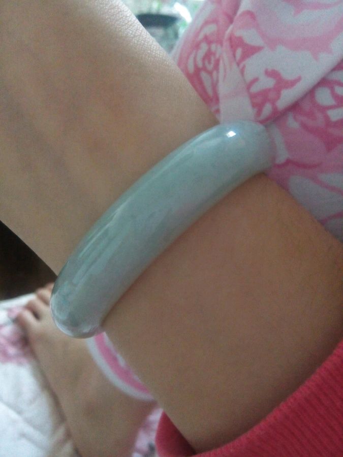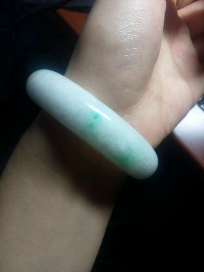 ,我这个只有三分之一紫色,还见光死。阳绿总共就那两块。其他的都发黄。你的二指宽很多啊。今天看了一个绿多点的,都要两万多呢