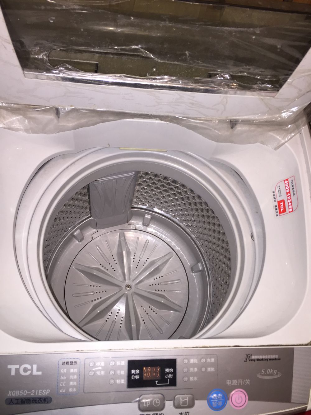 全自动洗衣机TCL,1级节能,9成新,保护膜都还没有撕,我们自己买的,现在急转500元,非常好用。