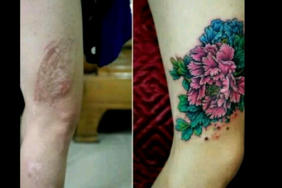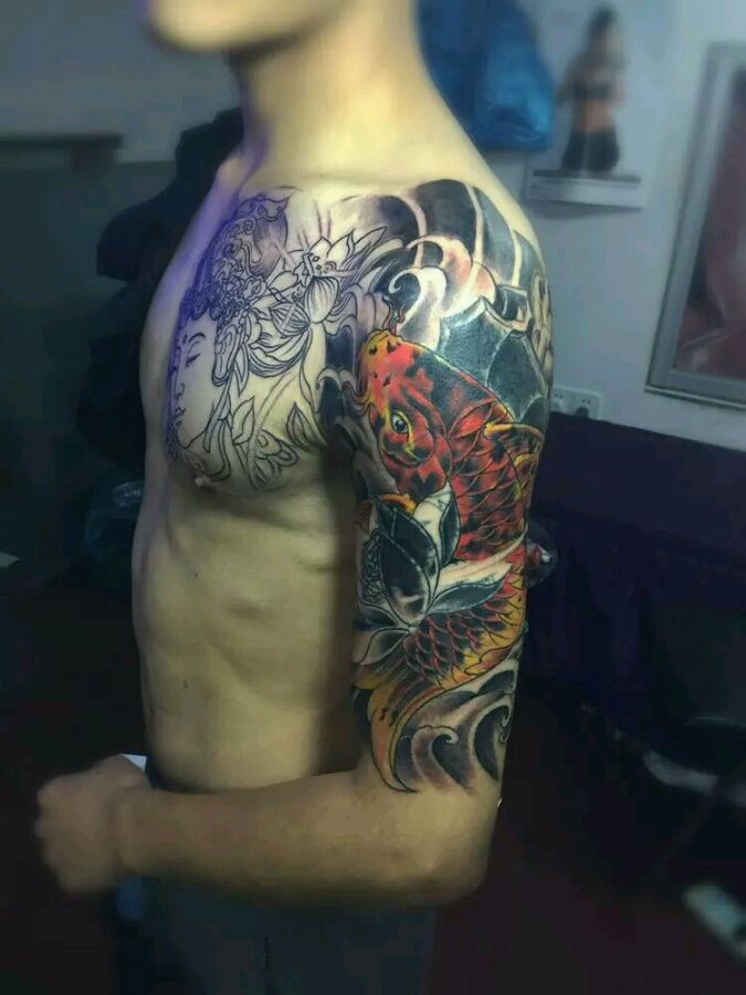 我这个就是覆盖上的,自己在网上找的图,纹身的师傅看着图用笔画胳膊上然后纹的,画画太牛,木得说