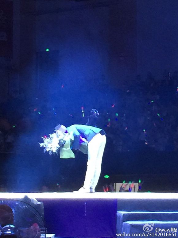 但还是坚持唱完第一首才叫工作人员换,人很有礼貌,很斯文,很会随机应变地表扬了工作人员!~(当时好想大喊“永琪、五阿哥”,但是最后还是没胆!