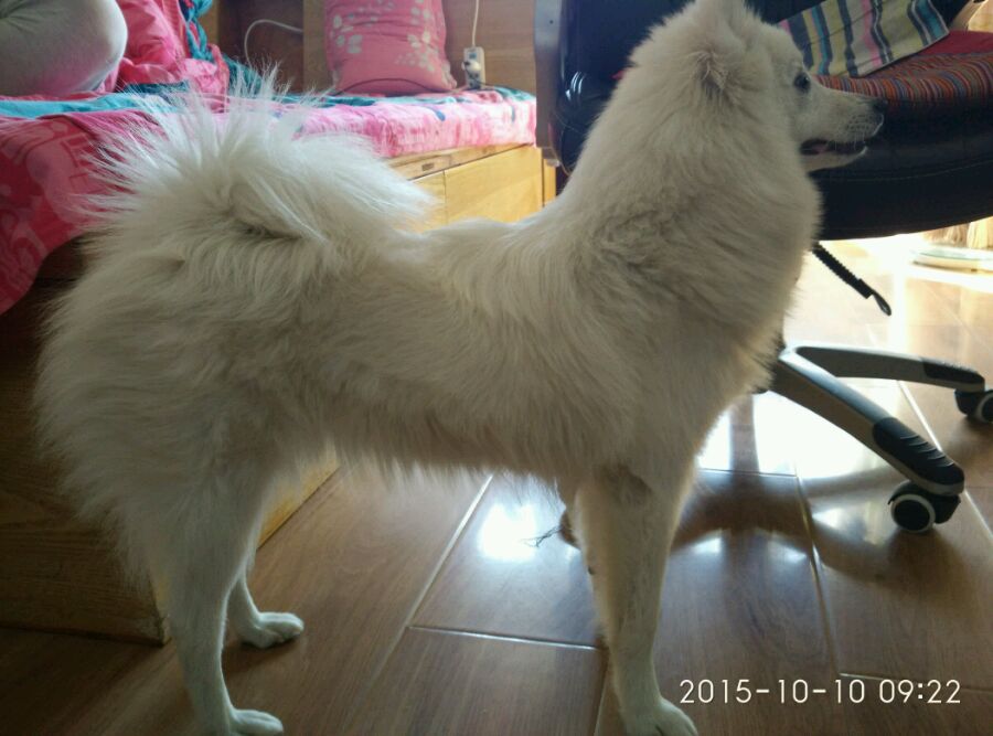 今天上秤一秤十五斤,这阵子每天早上吸一遍地,有时候晚上也得再扫扫,天天屋里跟下雪似的,什么时候梳毛什么时候就是一把。