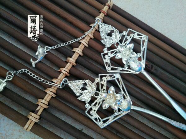 老银典雅侧簪(老银材质的颜色偏暗,非亮白)