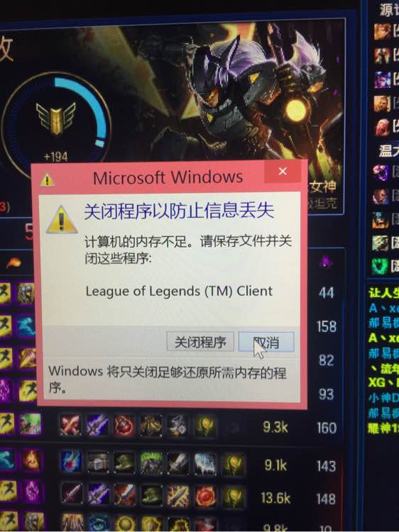 求助帖 玩英雄联盟总提示内存不足