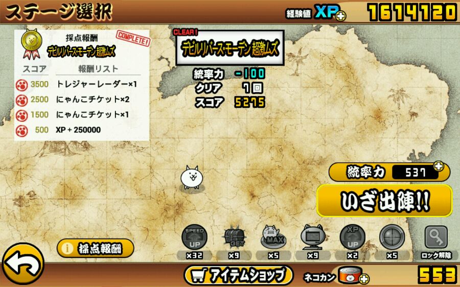 配置如下图,关键是一开始出双墙和鬼神,鬼神单体输出力毋庸置疑,然后鬼神挂了就出亚基拉之类的补上,鬼神能上就出鬼神,这样很快就能打死开局出的boss,这几只比较重点,其他超激应该可以换,换些每秒输出高的,血厚能压前线的就行,双墙一直出(开MAX道具)