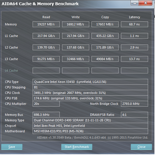 本人的微星h55m-e21板子已刷e33BIOS,之前已经水了很多经验。日常艹到3.6稳定使用。接下来上3450的一些跑分图。
