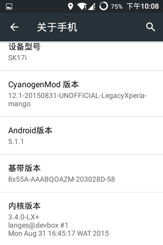 把卡刷包(cm-12.1-20150831-UNOFFICIAL-LegacyXperia-mango.zip)里的内核提到sony-sk17I-boot-img-rec.zip目录里替换原来的boot.img,