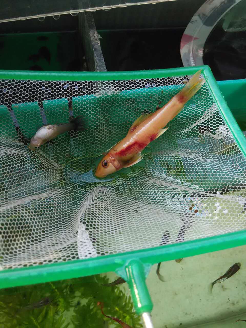 老婆捡起来给扔回鱼缸,我到家居然还有气,今早上才彻底离开鱼世!!!还不如昨天直接让他干死,多遭罪十多个小时。这十多个小时身体充了好多血斑。