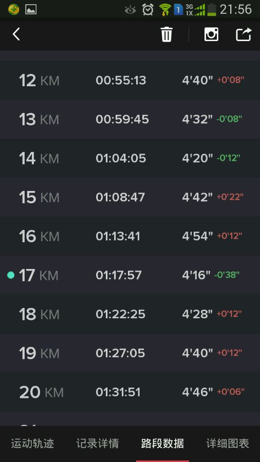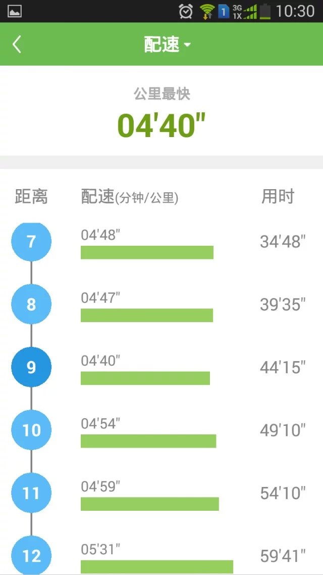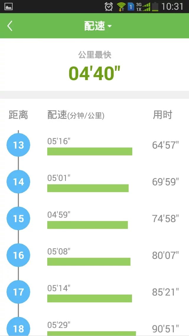 这是5月31日咕咚线上秦马的配速,这也是我的人生首马。