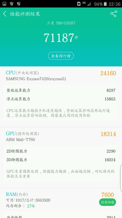 软件的问题,安兔兔是7420