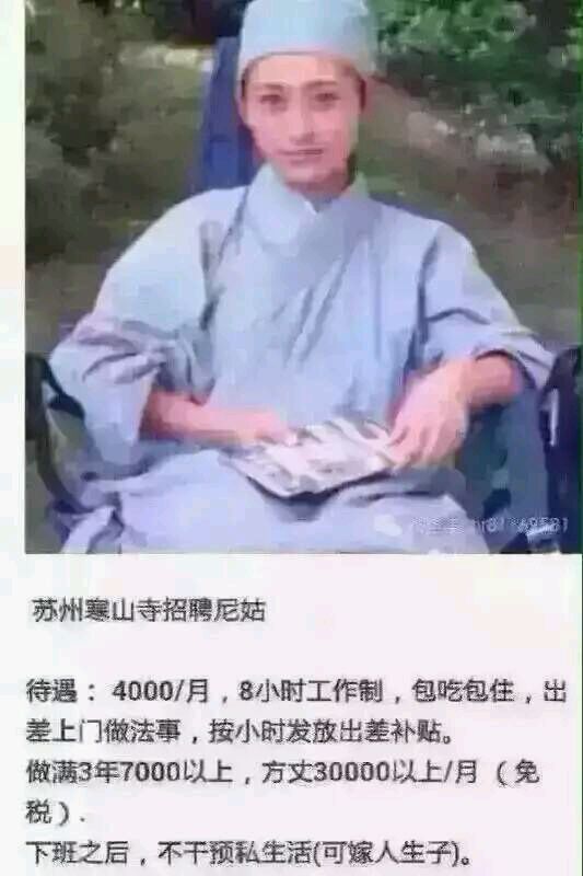 有要和尚的,比你这待遇好