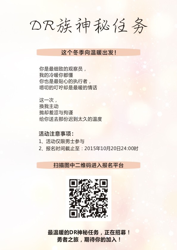 DR族神秘任务,这个冬季向温暖出发!只有最勇敢的男士才敢接受此任务,你有勇气来参加吗?