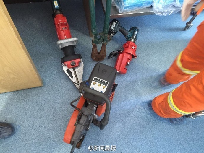 用电锯切,我想这哥们多半是废了