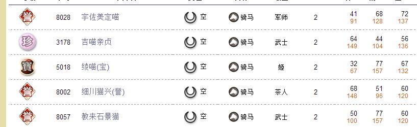残血武藏,松岛茶壶,高防地猫,百万石,高风闪避