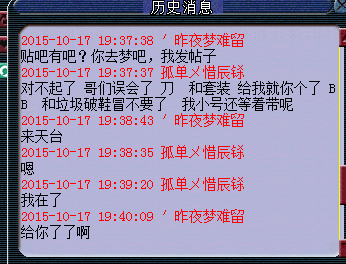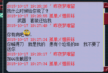 我不知道是不是真的,但是你说的好像跟真的似的我就给你了,我不喜欢麻烦事但不代表我怕麻烦事,我兄弟就是在这区玩的我才想在这区玩,东西给你只是想说我只想自己一个个人单机玩玩,不想沾惹一些屁事,几个东西加起来有几毛钱?既然你说的那么真的给你就是了,但是以后别再说话了,就是看这友好才给你的,不是因为欠不欠你的