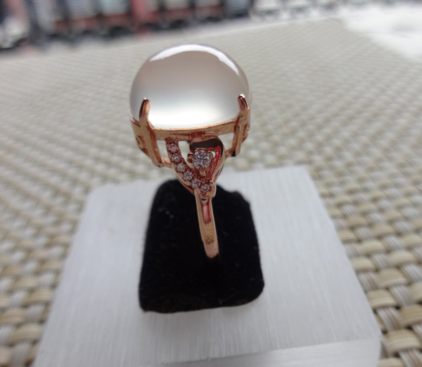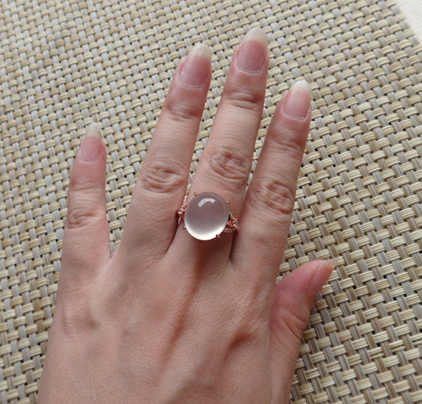 精选简单款白冰玉髓戒指,镶嵌皓石,925银镀玫瑰金