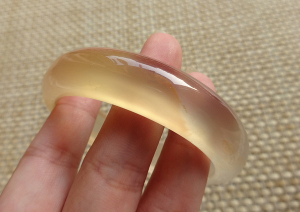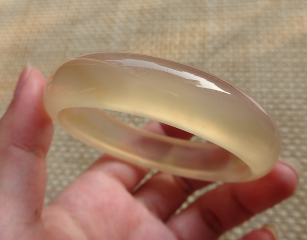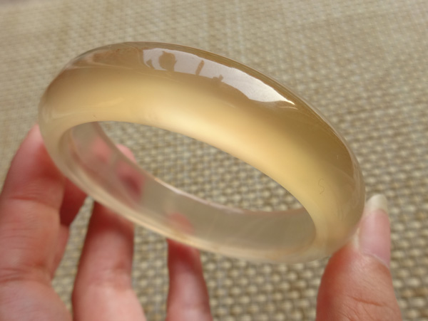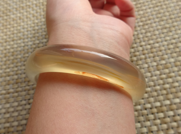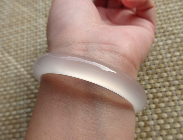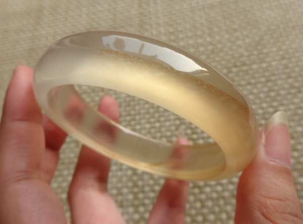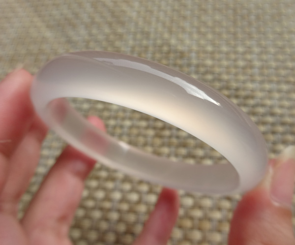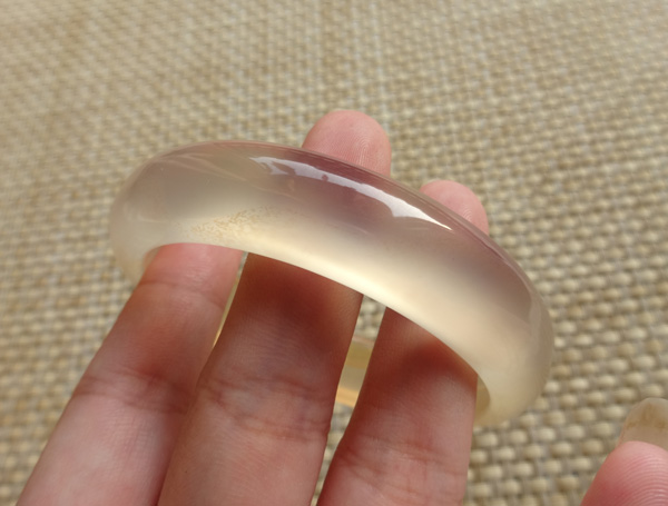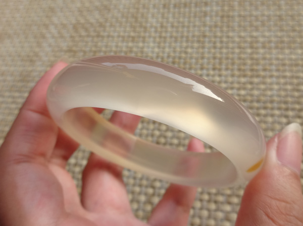 纯天然原色无烧马料玉髓手镯,荧光很美好