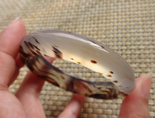 这个手镯很有韵味,带一缕缕的草花,好像豹纹