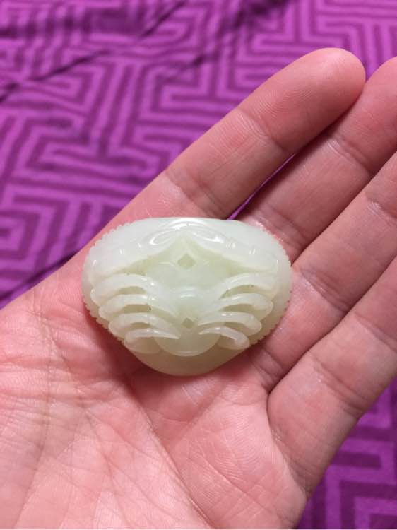 这是丢失很久的螃蟹,大概是青海玉吧?知道怎么穿的烦请教一教我吧…有图最佳
