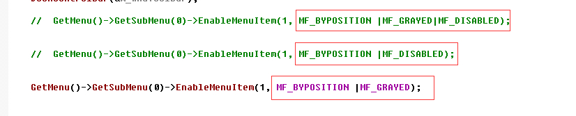 为什么我用EnableMenuItem函数设置菜单项状态,分别用参数MF_DISABLED 和参数MF_GRAYED 运行结果一样(都是灰色 不可用!)谢谢大家